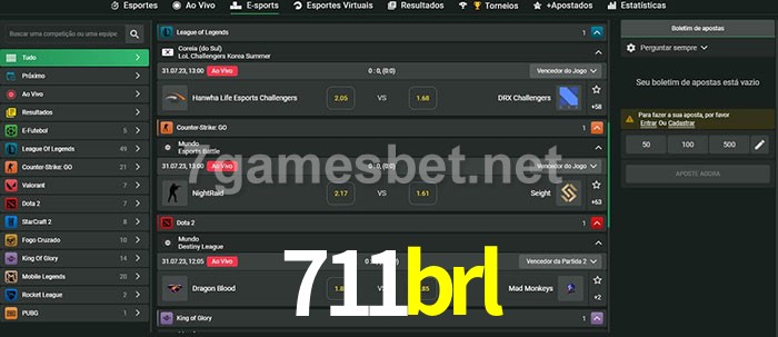 O 711brl oferece uma grande seleção de opções de apostas em e-sports com probabilidades competitivas